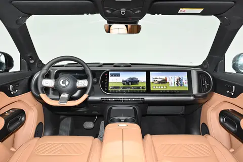 从第一眼观感来说,这款车确实不太像我们熟悉的smart。 由梅赛德斯-奔驰全球设计团队打造的Boxy方盒造型,让整车看起来硬朗且扎实。车身尺寸达到了4705毫米长、1920毫米宽、1710毫米高,轴距更是达到了2900毫米,这使它稳稳踏入中型SUV的阵营。设计师通过短前悬和短后悬的设计,在保证体量感的同时,尽可能地将车轮推向四角,为车内空间奠定了基础。新增的苍岩灰和星漩蓝等车色,配合哑光拉丝工艺前脸,赋予了它一种沉稳中带着精致的气质。