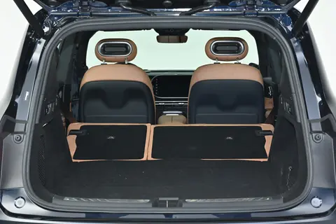对于家庭用户来说,空间和舒适性或许是更实际的考量。 得益于2900毫米的轴距和“紧凑于外、宽适于内”的设计理念,这款车的“得房率”达到了85%。实际坐在后排,腿部头部空间都比较充裕,官方数据显示后排头部空间有1060毫米,即使满载五人也不会觉得拥挤。后备厢的容积可以在625升到1525升之间灵活变化,车内还设计了32处储物空间,应对日常购物、周末露营或者长假旅行的行李装载需求压力不大。舒适性配置上,兼顾舒适与安全保护的前排零重力座椅是一大亮点,支持121度零压角调节,并集成了加热、通风和18分钟模式的按摩功能。20扬声器的森海塞尔音响系统配合256色氛围灯,共同营造出一个颇具沉浸感的座舱环境。