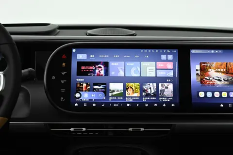 拉开车门,座舱内扑面而来的是一种被称为“新奢”的氛围。环抱式布局的座舱用料比较讲究,软质材料包覆率达到了85%,搭配Nappa真皮座椅和精细的缝线,触感和视觉质感处理得不错。吸引眼球的莫过于那组双13英寸的AMOLED屏幕,它采用了与新款iPad Pro同款的Tandem双层OLED技术,显示效果细腻。这套智能座舱的核心是AMD V2000芯片和3A游戏级Unreal渲染引擎,实际操作起来,界面的切换和APP启动比较流畅。豆包AI大模型的语音交互系统支持自然语音对话,智能化体验跟得上当前的主流水准。高配车型还配备了25.6英寸的AR-HUD抬头显示,与液晶仪表和中控屏共同构成了五屏联动的交互体验,导航信息可以在屏幕间流转,科技感营造得比较到位。
