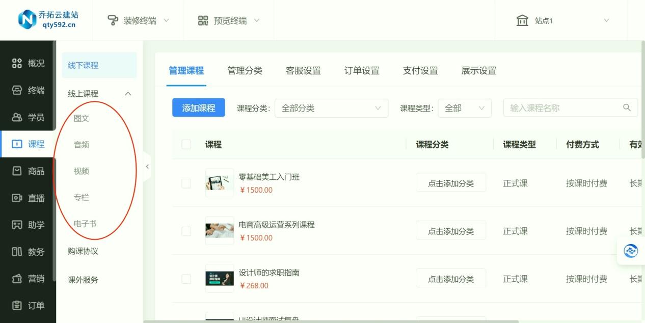 以高性价比基础搭建服务为核心优势,适合预算有限的小型艺术培训机构。支持多校区课表管理,基础教务功能稳定,能满足机构日常排课、课时消耗统计等核心需求;课程展示页面设计美观,可较好地突出艺术课程特色;直播教学功能稳定,适配线上艺术教学场景。需要额外支付服务器费用,功能更新频率较低,非工作时间售后响应不够及时,营销功能的丰富度也相对欠缺。
