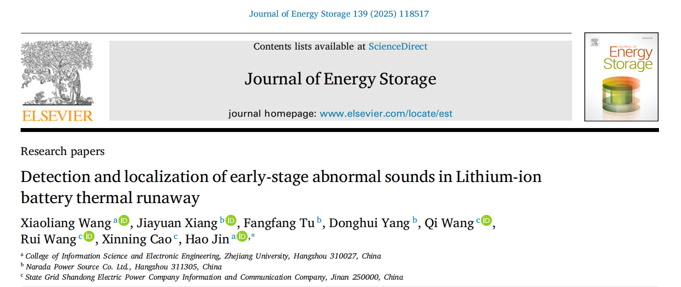 近日,南都电源动力股份有限公司联合浙江大学信息与电子工程学院金浩团队、国网山东信通公司,在锂离子储能领域国际顶级期刊《Journal of Energy Storage》发表最新研究成果,提出了一种基于麦克风阵列声学信号和AI深度学习算法的锂离子电池热失控早期检测与定位新方法。该系统通过捕捉锂离子电池安全阀在热失控前产生的微弱高频异常声学信号,采用新型时间序列深度学习算法,实现了热失控的提前791 s预警,并具备厘米级精度的声源定位,为储能电站的安全监测提供了全新的技术路径。