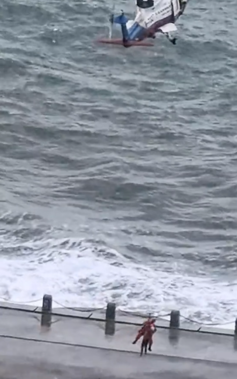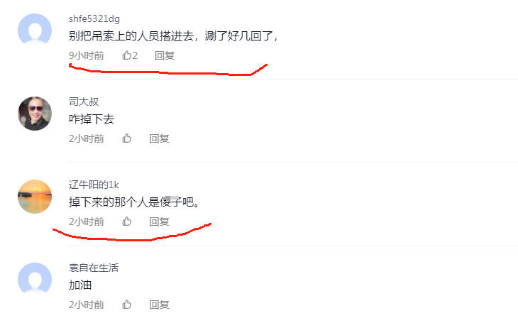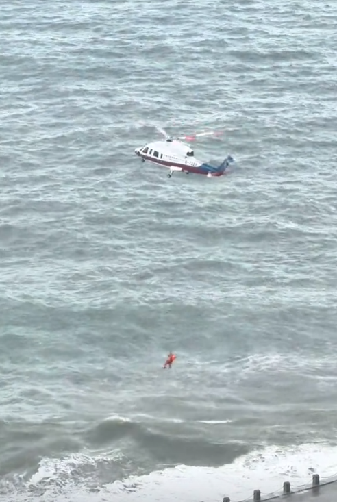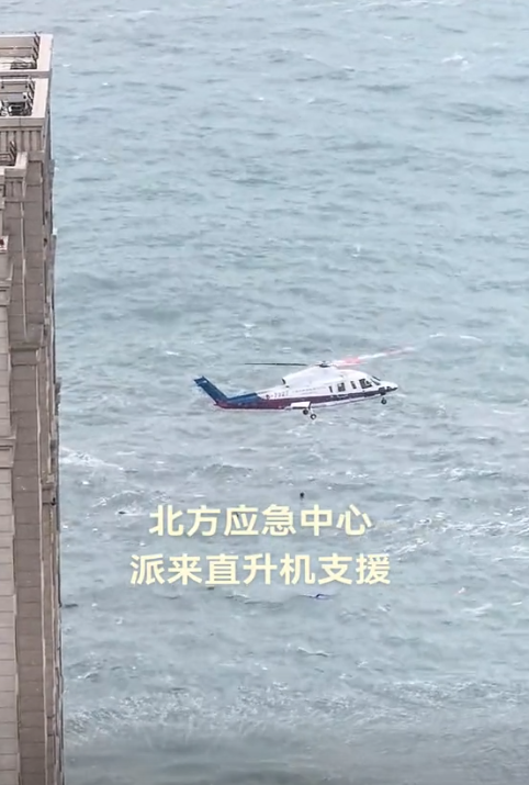 但是您能想到,这种事情上还有黑子,说救援的人很傻。其实懂的才懂,为什么要好像在空中走步一样,是为了维持平衡啊,那么大的风和那么大的浪。