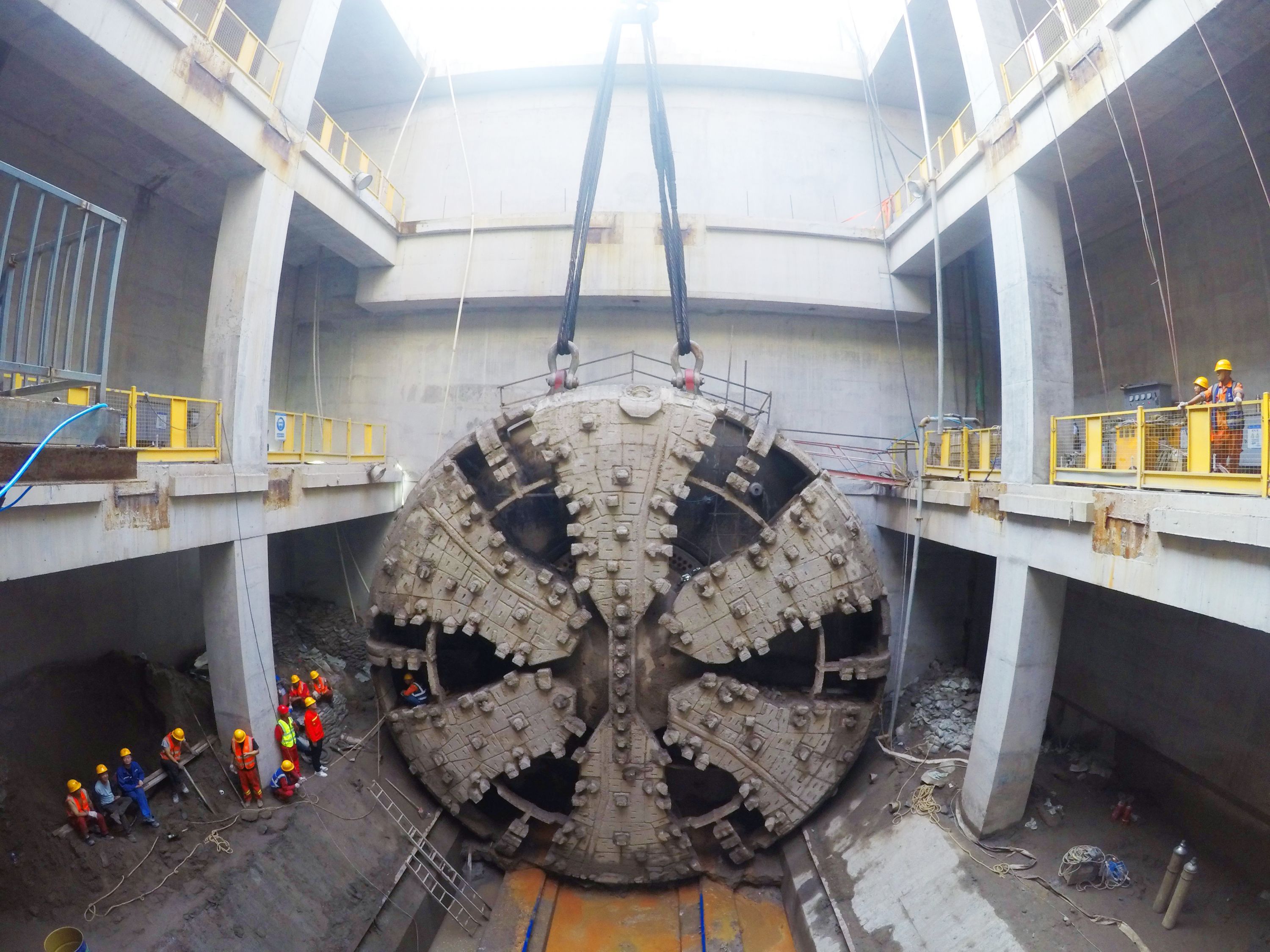 12号线“江城先锋号”盾构机完成穿越长江任务,吊装刀盘。通讯员供图