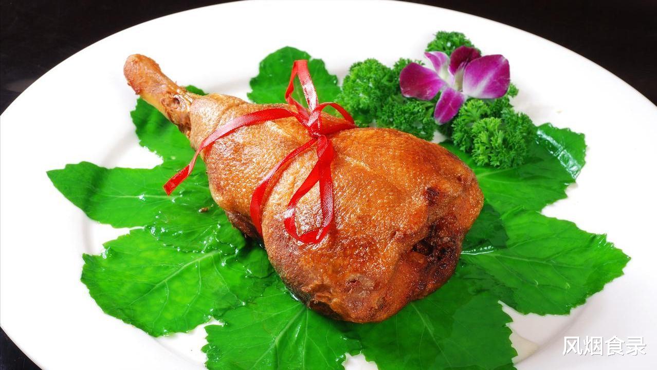 做法那是真见功夫,整鸭脱骨,皮不能破,得把骨头剔得干干净净,肉还得连着,这叫“骨不带肉”。