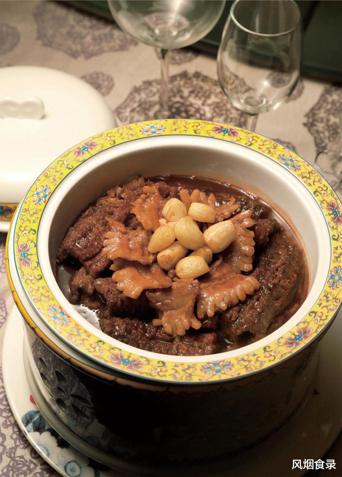 主料是鸭胰和鸡脯,配上冬笋、冬菇,用鸭油猛火快炒。