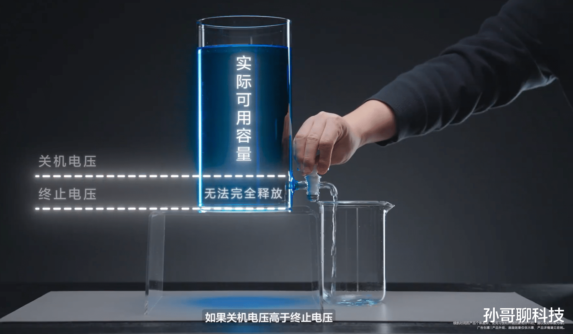 李小龙认为,虽然友商可以将电池做更大,续航却不及预期,真实原因是友商电池释放与标称容量相差巨大。李小龙用水杯做比喻,手机充满电就相当于装满一杯水,友商标称容量是从满水到放完水循环容量,友商电压限制导致无法放完水。