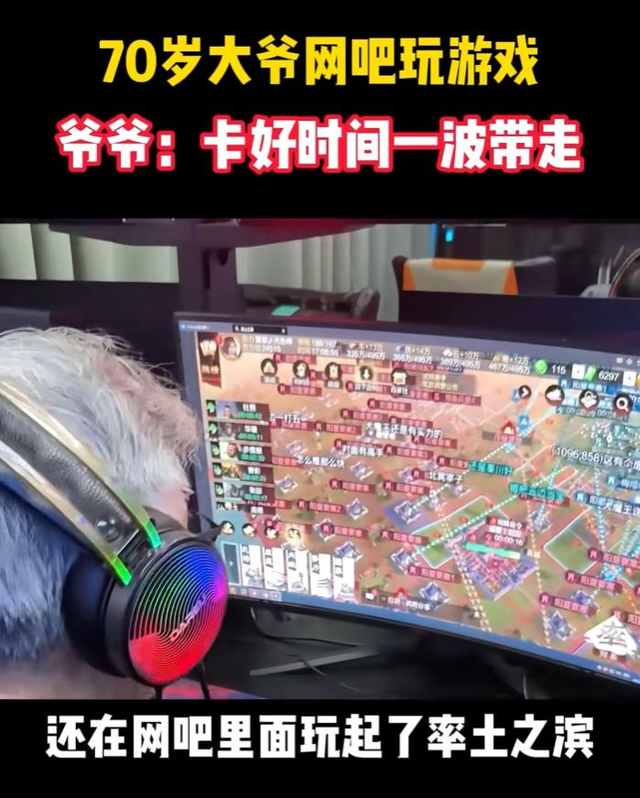 这位 70 岁的广州老大爷,头戴炫彩 LED 电竞耳机,端坐在电脑前,双眼紧紧盯着屏幕前的《率土之滨》游戏战局,口中不断喊出 “卡好时间,一波带走!拆迁队上上上!” ,那投入程度丝毫不亚于一边上网打LOL的年轻小伙。