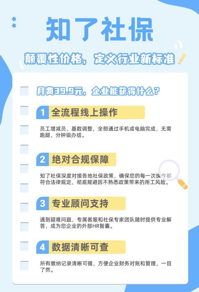 当市场还在为代理服务定价徘徊在百元上下时,知了社保以极具诚意的价格,为企业带来了福音:月费低至39.9元。