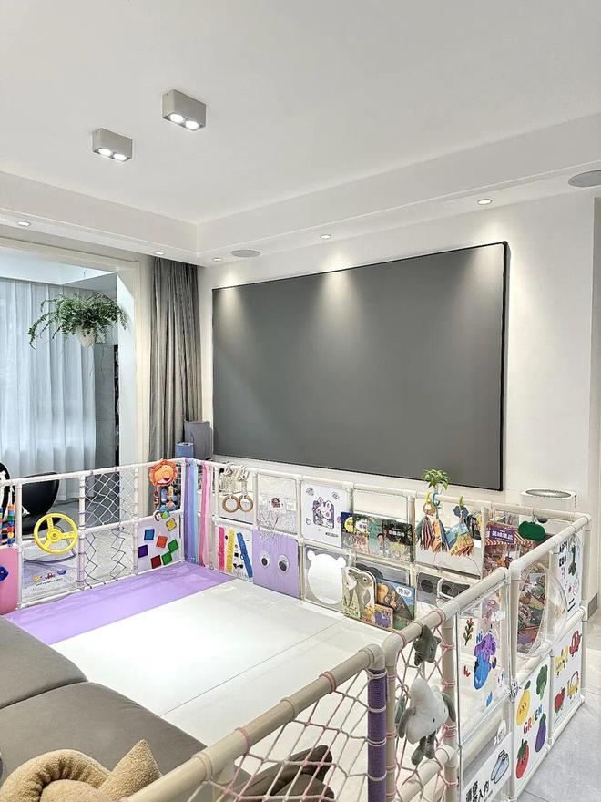说完攀爬架,再来说说有娃家庭必备的围栏,主要是为了避免孩子在生活中不小心磕碰到。