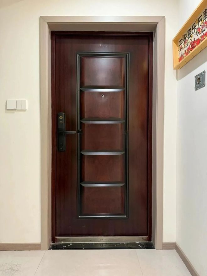 最后再来说说被无数家庭嫌弃的“猪肝色”入户门,换一扇太贵,不换吧又接受不了。