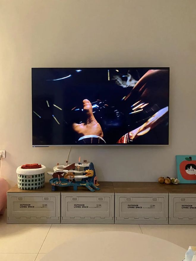 2)用「露营箱」平替电视柜,一个成本差不多50块,可随意组合,用起来和普通柜子几乎一样。