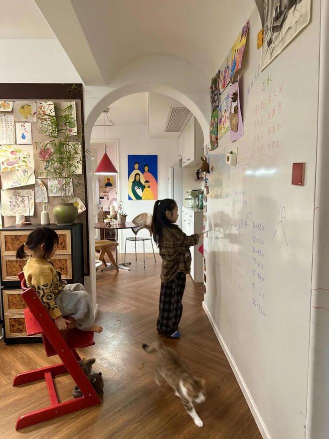 不少家庭都喜欢在过道处设计一块黑板墙,既是为了利用空间,也是为了方便孩子乱涂乱画。