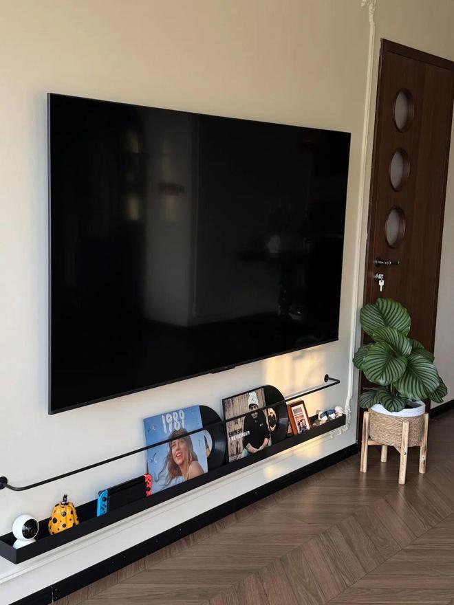 3)用「杂志架」平替电视柜,成本200块左右,收纳力差一点,但比较适合极简风家庭。