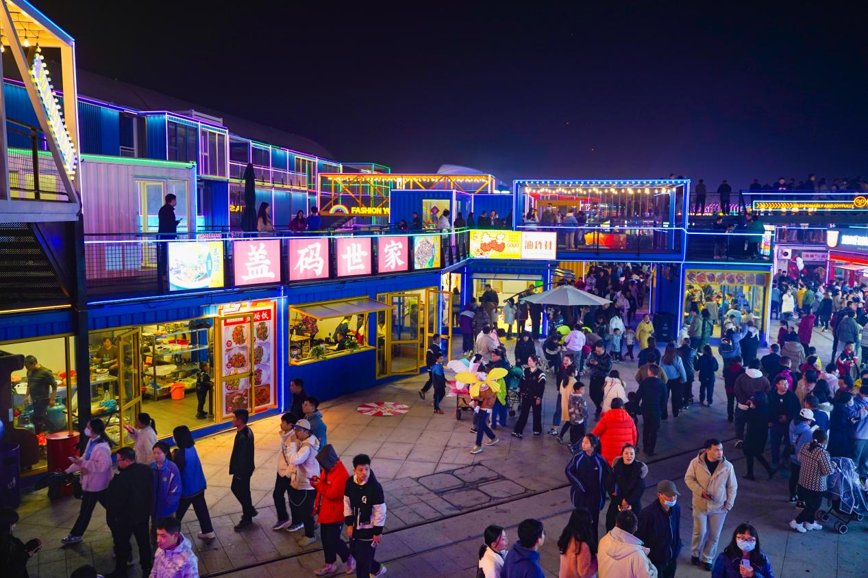 湘潭万楼青年码头摩天轮集市:30 天内完成 658 组集装箱的设计、生产与落地,创造了 “极速场景造” 的行业标杆。通过错落堆叠形成立体商业空间,搭配码头文化元素与灯光设计,78 天客流突破百万,带动周边土地增值 15 亿元,抖音话题播放量超千万。