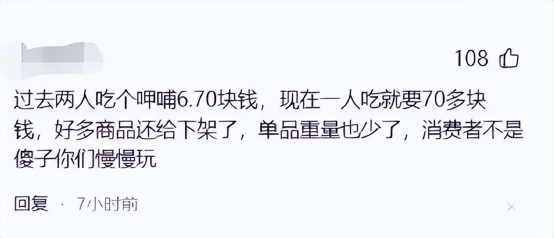 有网友说:“以前花二三十元就能吃饱的单人套餐,后来得花七十多元才能吃饱。”