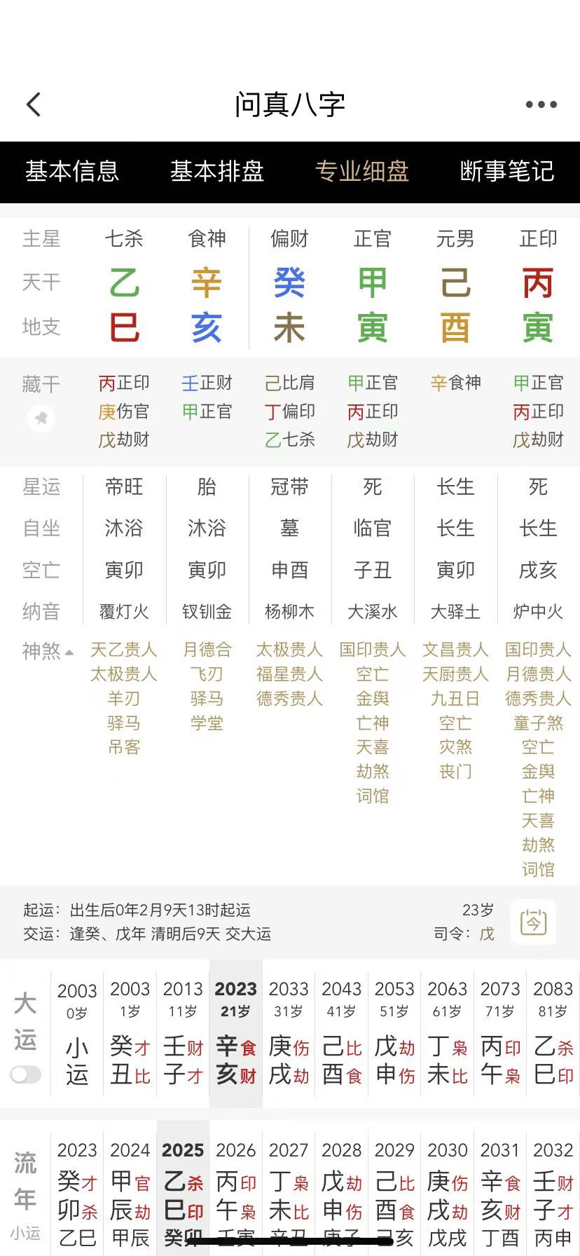 大运:癸丑,壬子,辛亥,庚戌,己酉,戊申,丁未,丙午,乙巳,1岁运。