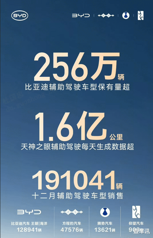产品力的全面进阶为销量护航,智驾技术成为加分项。截至 2025 年 12 月,比亚迪辅助驾驶车型累计保有量超 256 万辆,稳居中国车企第一。“天神之眼” 智驾系统日均生成 1.6 亿公里数据,94.13% 的激活比例印证用户认可,12 月单月辅助驾驶车型销量近 19.1 万辆,其中王朝&海洋系列贡献 12.89 万辆,高端车型表现亮眼。全年 933 万次 AEB 自动紧急刹车触发,以及泊车安全损失兜底承诺,让智驾成为用户购车核心考量。