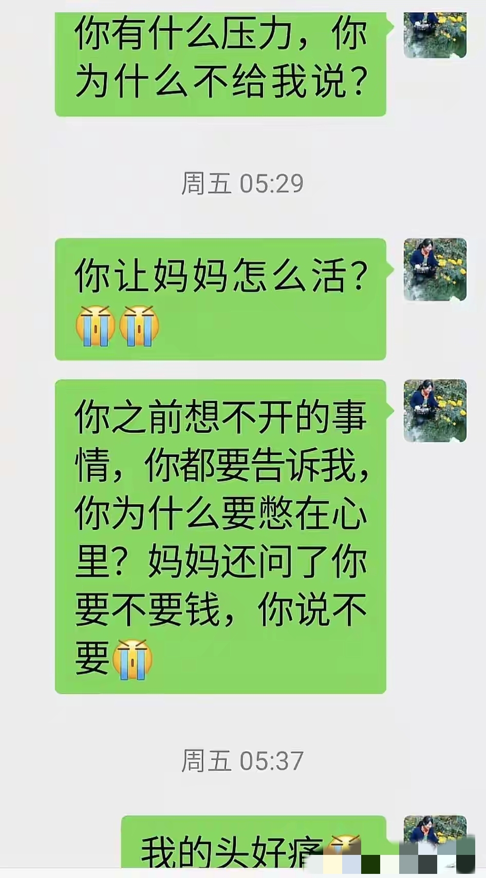 女孩妈妈看到女儿发的朋友圈就知道女儿想不开,因为女儿发的是累了,毁灭吧!记得送我紫色的花。