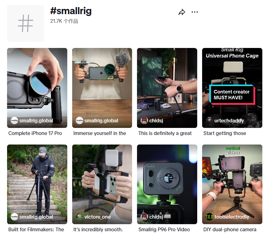 SmallRig的UGC策略则更加垂直深入。这个摄影配件品牌明白,他们的目标用户是专业的创作者,而这些创作者本身就有强烈的内容产出能力。
