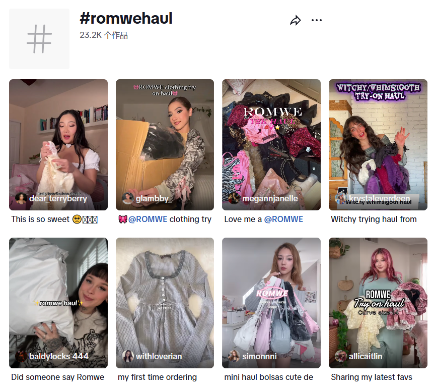 其曾发起过#ROMWEhaul挑战赛,鼓励用户分享他们购买的ROMWE单品。