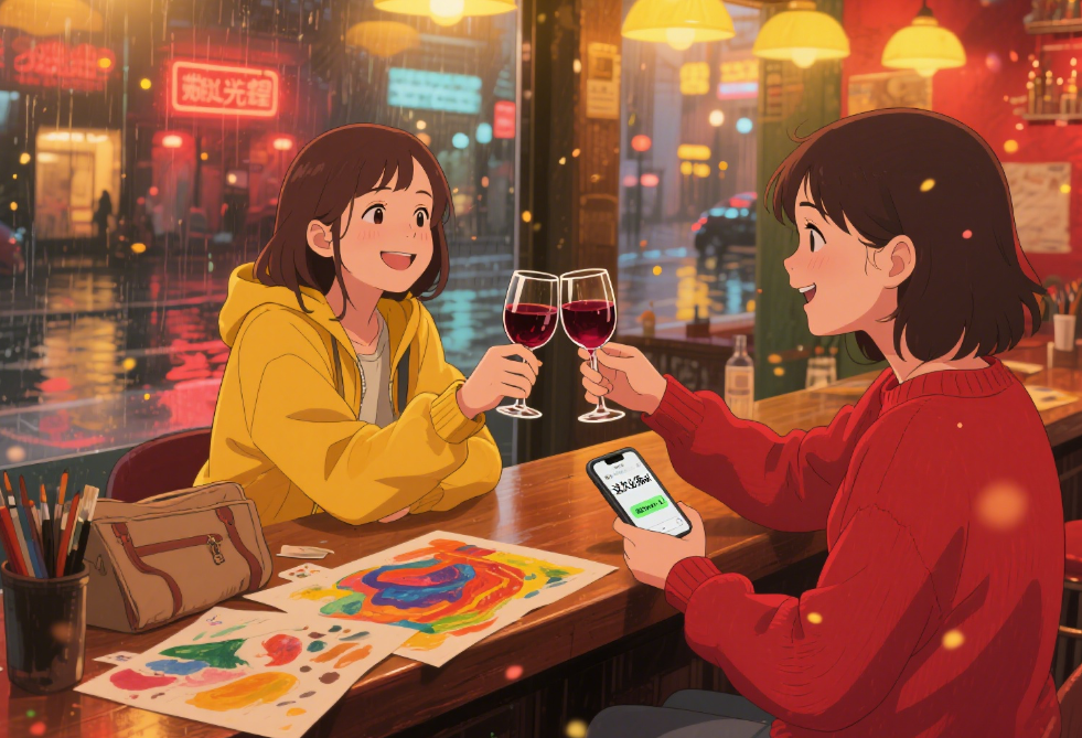新租的房子很小,是个明亮的老小区开间。搬进来的第一晚,异常安静。没有键盘敲击声,没有APP的记账提示音,也没有那种时刻需要保持“边界感”的隐形压力。我坐在窗边的小桌前,铺开一张全新的画纸。没有构思商稿,只是随意拿起画笔,蘸了浓烈的朱红,重重地涂抹上去。然后是钴蓝、藤黄、翠绿……各种饱满到近乎刺眼的颜色在纸上肆意流淌、碰撞、覆盖。没有章法,没有主题,只有一种近乎宣泄的本能。画着画着,眼泪毫无预兆地再次滚落,滴在未干的颜料上,晕开一小片模糊的水痕。我停下笔,看着那片水痕慢慢扩大、变淡。手机屏幕亮了一下,是闺蜜苏晓发来的微信:“薇薇,安顿好了吗?出来喝一杯?老地方,我请客!庆祝你脱离苦海,重获新生!”后面跟着一个夸张的庆祝表情包。我看着屏幕上跳动的文字和那个搞怪的表情,又看了看画纸上那片被泪水晕开、色彩交融的混沌痕迹。嘴角,慢慢地、一点一点地向上弯起。不是强颜欢笑,而是一种从心底深处泛起的、真实的、带着泪意的轻松。脱离苦海?重获新生?或许吧。至少,我不用再活在别人的算盘珠子里了。我拿起手机,指尖飞快地敲下回复:“好!马上到!不过,这次必须AA!”按下发送键,我看着那个“AA”,自己先忍不住笑出了声。这一次,AA不再是冰冷的规则和束缚,而是我林薇,真正自由的选择。