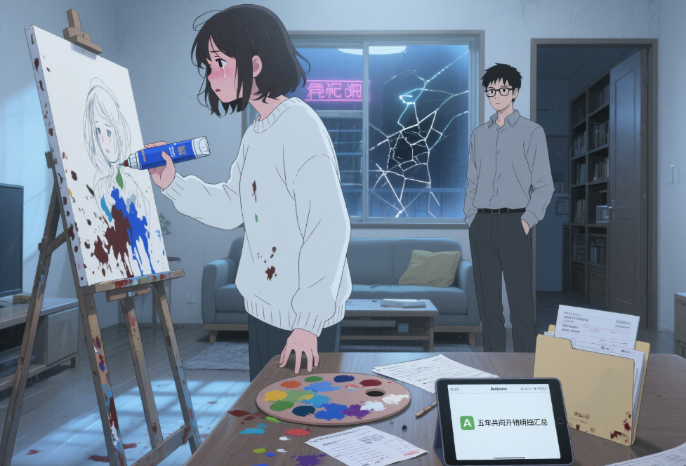 那是我赶一个重要商稿的关键颜色。压抑了几个月的委屈、愤怒和那本账本带来的巨大羞辱感,瞬间找到了出口。“谁动了我的钴蓝?!”我拿着被污染的颜料管,声音因为极力克制而微微发颤,目光如炬地射向刚从书房出来的陈默。他愣了一下,看清我手里的东西,眉头习惯性地皱起,语气平淡无波:“哦,前天我渲染图临时需要调个色,看你不在,借用了一点。怎么,不能用了吗?”一点?我看着管口干涸的混杂色块,心头的火腾地烧起来:“这是一点?这是污染!整管都废了!这是我的工作用品,你凭什么不打招呼就用?”“凭我们AA合租。”他的声音也冷了下来,带着那种惯常的、就事论事的逻辑,“公共空间内的物品,理论上使用权共享。如果你认为这是你的专属物品,应该明确标注并妥善保管。另外,颜料价值多少?按市场价折旧,我可以承担一半损失。”又是AA!又是价值!又是折旧!又是他那一套冰冷精确的逻辑!那本秘密账本上密密麻麻的字迹仿佛瞬间在我眼前放大、飞舞。“够了!陈默!”我几乎是吼了出来,声音在空旷的客厅里显得异常尖锐,“除了钱!除了算账!除了你那些该死的规则!你眼里还有什么?我们之间到底还剩什么?”吼出这句话,我浑身都在发抖,不是因为愤怒,而是因为一种巨大的、灭顶般的绝望和悲哀。五年了,原来我们之间,真的只剩下这些可以精确到小数点后两位的东西了。陈默显然没料到我的爆发如此剧烈。他怔在原地,镜片后的眼睛闪过一丝错愕,随即被更深的冷硬覆盖。他抿紧嘴唇,沉默了几秒,像是在处理一个突发的程序错误。然后,他推了推眼镜,语气恢复了那种令人心寒的平静,一字一句,清晰地砸在地板上:“林薇,看来你对我坚持的AA原则,一直心存不满,或者说,存在根本性的理解偏差。既然如此,我们也没必要再互相折磨了。”他顿了顿,目光锐利地直视着我,仿佛在宣读一份早已准备好的判决书:“分手吧。各自清算清楚,对谁都好。”这句话落下,像一块巨石投入死水。客厅里死一般的寂静。窗外城市的喧嚣仿佛被瞬间抽离。我看着他冷静到近乎漠然的脸,心脏像是被一只无形的手狠狠攥住,然后被那句“清算清楚”的冰冷宣言彻底碾碎。五年时光,无数个日夜的陪伴与纠葛,最终落点,竟在这轻飘飘又重如千钧的两个字上——清算。也好。真的,也好。我深吸一口气,努力压下喉咙口的腥甜和眼底汹涌的酸涩,挺直了脊背,迎上他的目光,声音竟也出乎意料地平静下来,带着一种尘埃落定的疲惫和解脱:“好。那就清算吧。”