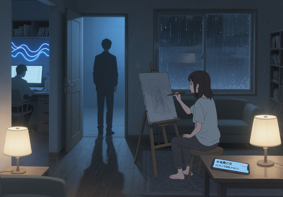 裂痕一旦产生,便会在日复一日的消磨中悄然蔓延。陈默的工作越来越忙,出差成了家常便饭。我则沉浸在自己的插画世界里,为了一套商稿的细节反复修改,昼夜颠倒。我们像两条偶尔交错的繁忙航线,即使同处一个屋檐下,交流也常常仅限于账目的核对和必要的生活安排。“物业费交了,你那份367.5,转我。” “这周买菜钱我垫付了,明细发你邮箱,核对一下。” “周末我出差,水电煤气费记得按时交,账单拍给我。” 对话越来越简洁,越来越功能化。