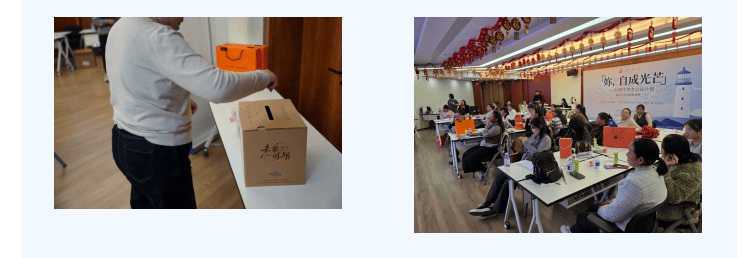 “凝心时刻・感恩互动典礼”,让温情在空气中静静流淌。“机构知多少” 有奖问答环节,主持人抛出关于机构发展历程与核心理念的问题,大家踊跃抢答,在欢声笑语中加深了对爱吉瑞丽的了解,也让那份归属感愈发浓厚。