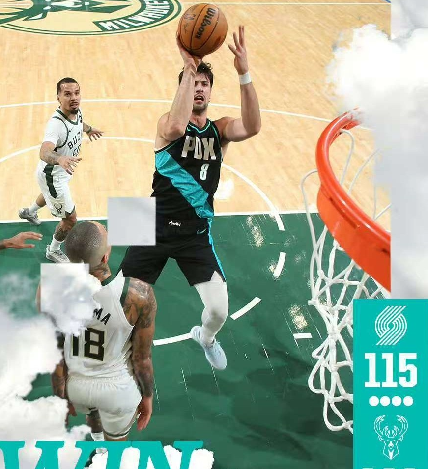 最后一节开拓者开场连得7分打停雄鹿,暂停回来雄鹿也没什么改观,开拓者已经领先31分了。这时候开拓者主教练老李还不换主力休息,这时候雄鹿也没放弃,一度把分差追到还有18分。开拓者又被迫叫暂停调整,还把首发格兰特叫回来。还好雄鹿落后太多,他们也无心恋战。比赛还有2分34秒杨瀚森替补登场,可惜他没有接到球,上来没有任何贡献。最终开拓者以115比103击败雄鹿,球队终于取得胜利。