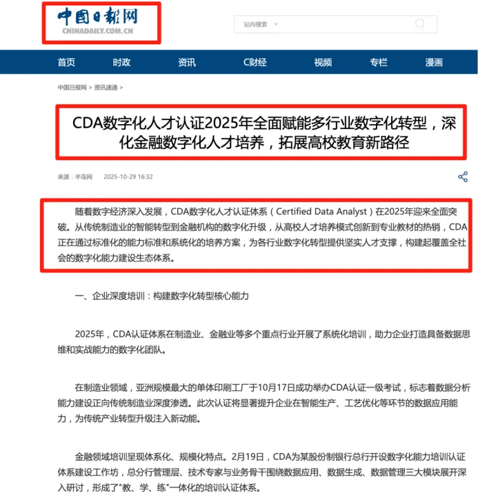 它不限制专业,非常适合数据安全与管理专业的同学来考,系统提升数据采集、处理、分析和保护的全流程能力。它权威性高,是数据领域最具认可度的证书之一,与CPA、CFA齐名,甚至还受到过人民日报、经济日报等权威媒体的推荐。企业真的认!很多企业,尤其是银行、金融机构的技术岗,招聘时会明确标注“CDA持证人优先”。中国联通、德勤、苏宁等名企,甚至会将CDA持证人列入优先考虑名单,或为员工考试提供补贴。CDA数据分析师持证人的薪资优势职位类型无CDA认证平均月薪CDA持证人平均月薪涨幅初级数据安全岗7K-9K9K-12K↑ 约30%中级数据分析/安全岗10K-15K15K-20K↑ 约40%金融行业技术岗12K-18K18K-25K↑ 约45%考取CDA证书,意味着你不仅掌握了数据安全的技术,更理解了数据如何产生价值、如何被使用,这种复合型能力正是企业愿意支付更高薪水的原因。