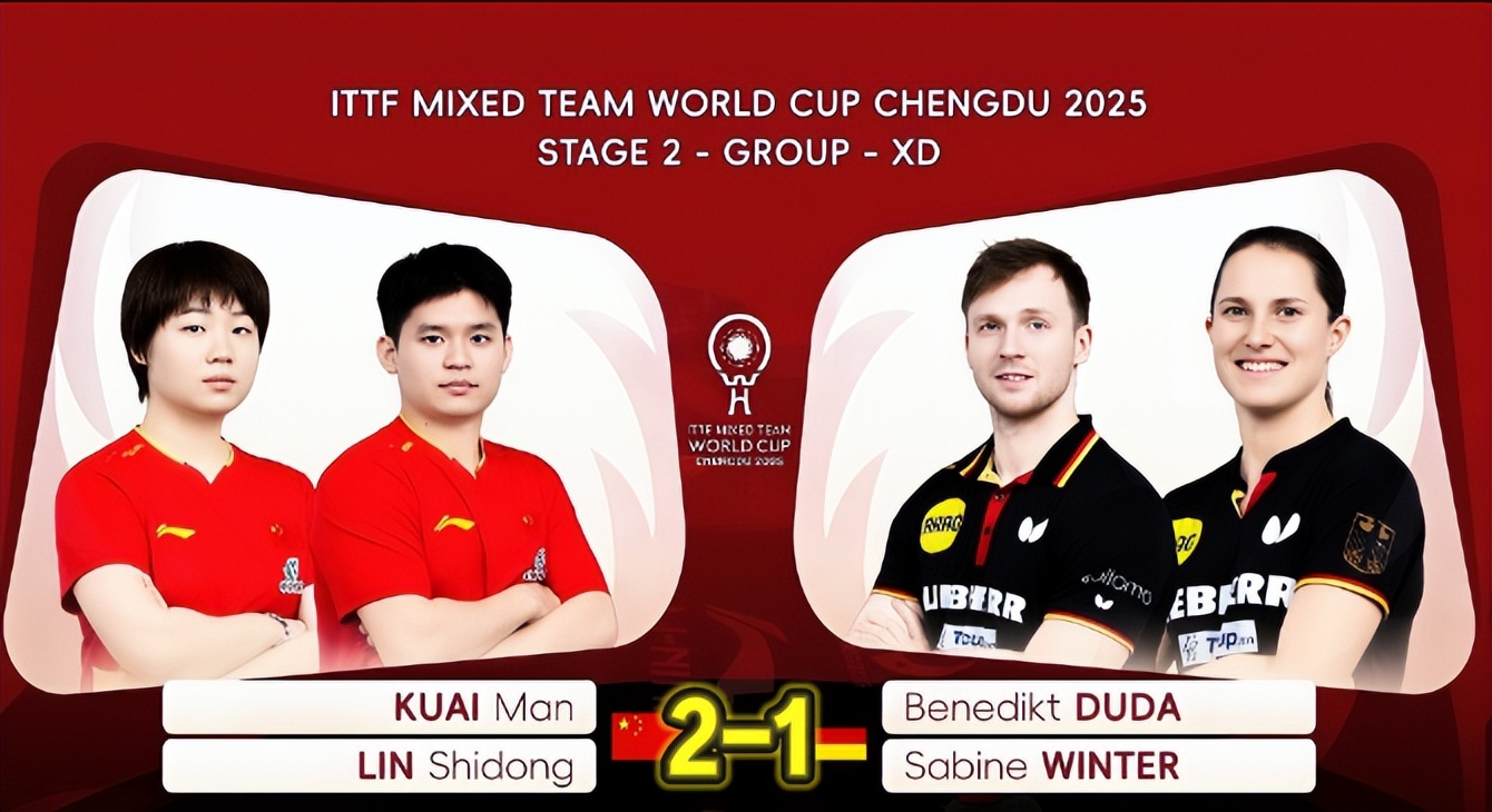 第一盘出战的是混双组合,林诗栋和蒯曼对战杜达和温特。