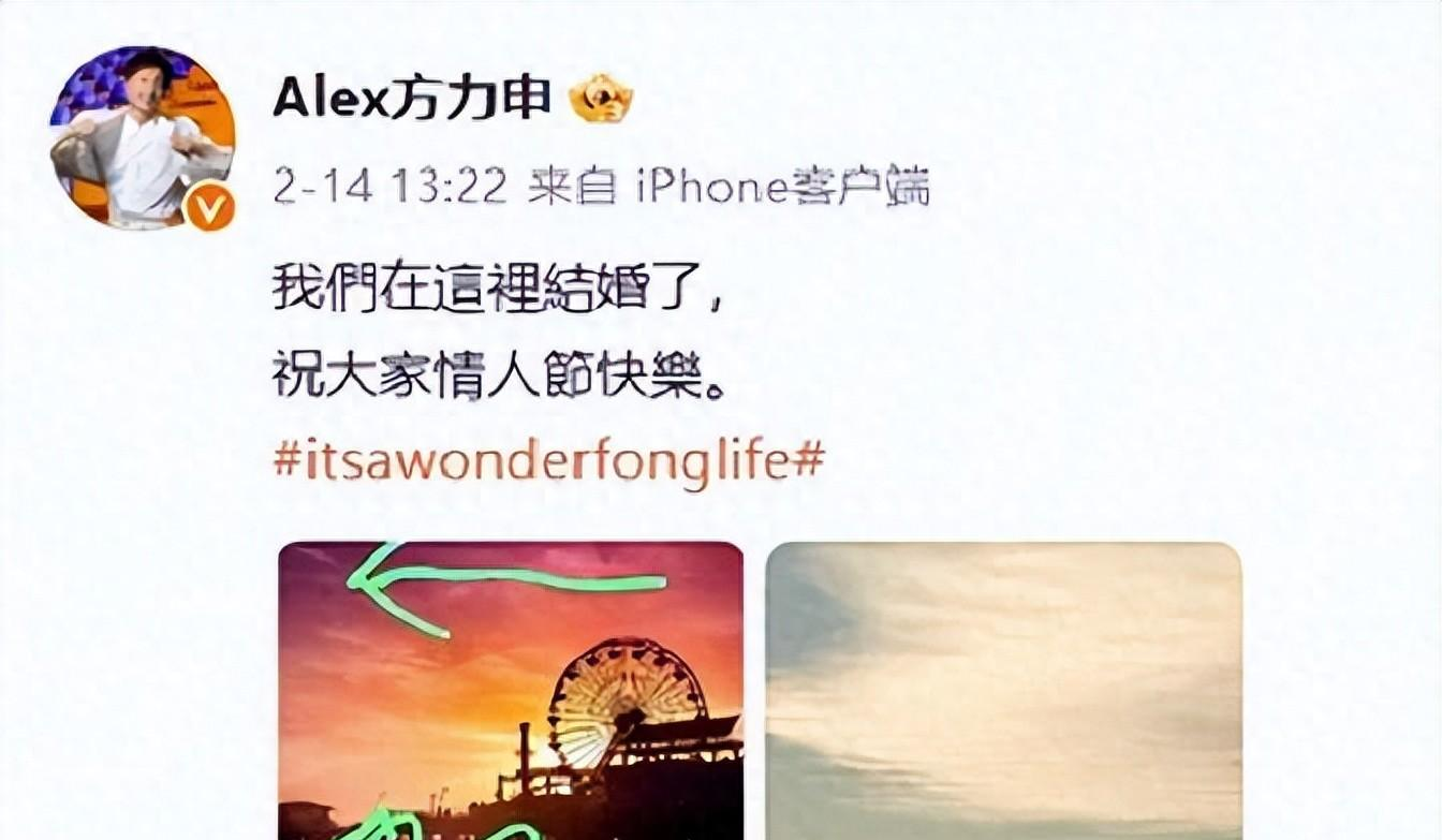 2月14日情人节当天,港圈男神方力申突然在微博上晒出红底结婚照,配文“我们签婚书了”。