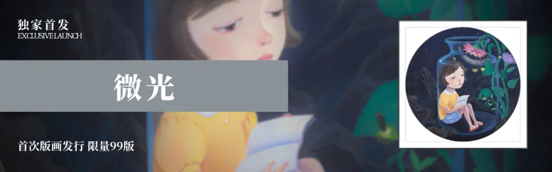 在她的创作中,人物与自然元素的交融成为一大亮点。《我在想你的时候睡着了》和《相随》展现了人与动物之间的和谐关系,而《三二一,对不起》和《相依》则通过人物形象传达出深刻的情感体验。最后一幅作品中,女孩在玻璃瓶中阅读,周围被花草和星光包围,展现了艺术家对自然与人之间微妙关系的思考。