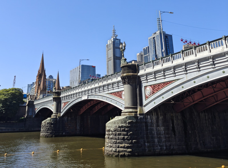 雅拉河上的王子大桥(Princes bridge),不远处可见圣保罗大教堂的尖顶