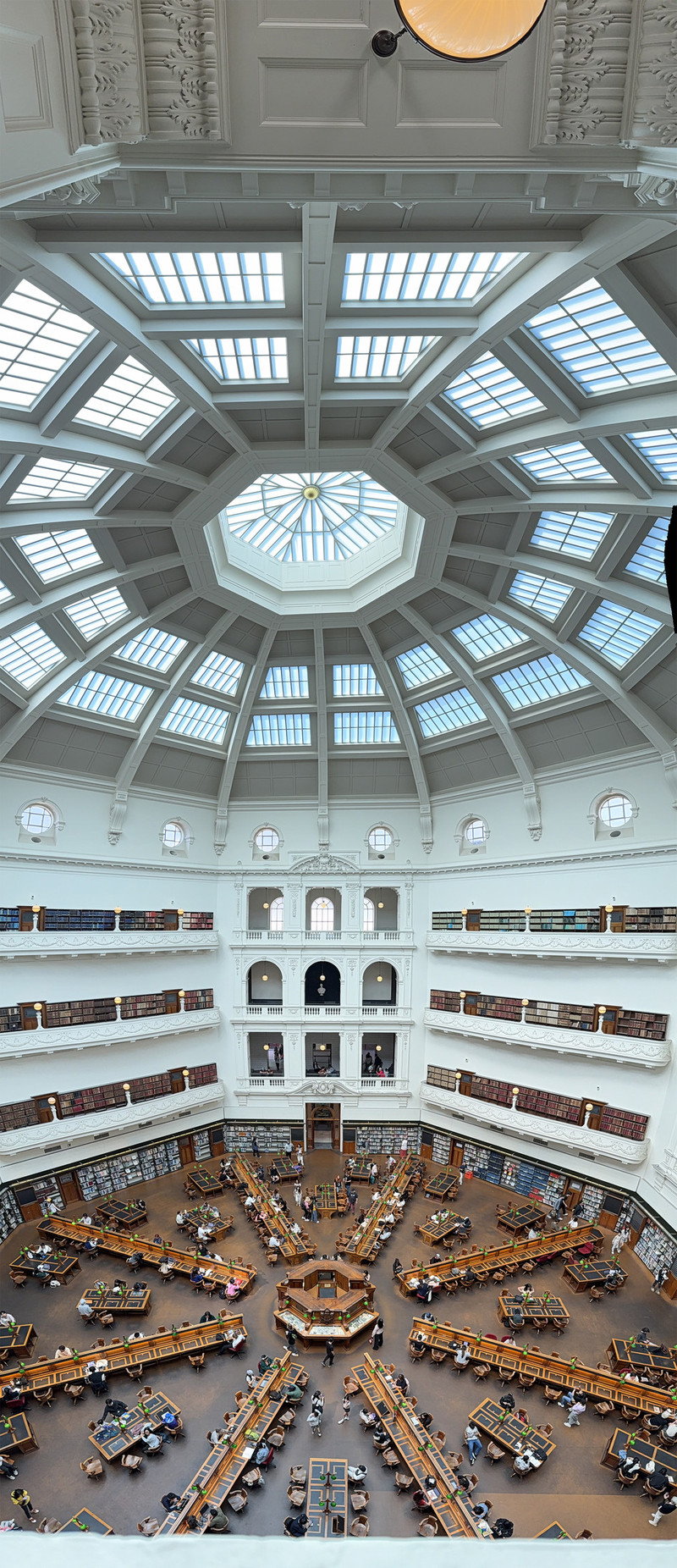 维多利亚州立图书馆有名的八角形中庭阅览室