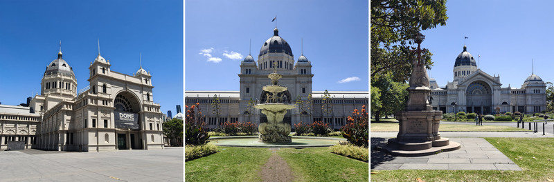 墨尔本皇家展览馆和它周边的卡尔顿园林(Royal Exhibition Building and Carlton Gardens),在2004年被列入世界文化遗产。它是为墨尔本在1880年举办世博会而特别设计的,整个建筑融合了拜占庭式、罗马式、伦巴第式以及意大利文艺复兴风格。1901年澳大利亚联邦成立之初,墨尔本作为临时首都,曾在这里举行第一次联邦议会,因此这里称得上是澳大利亚联邦的开国之地。