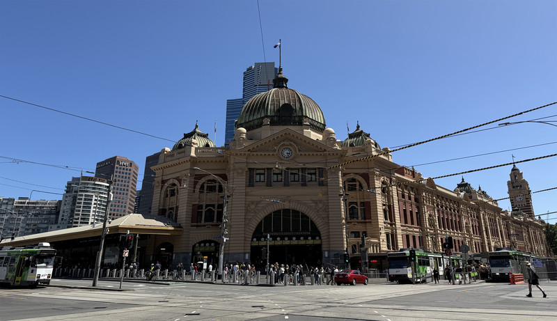 1.1.2 弗林德斯街火车站(Flinders St Station),就在涂鸦街的不远处。这是墨尔本的第一座火车站,建成于1925年,整整一个世纪以来一直是墨尔本的重要地标之一。