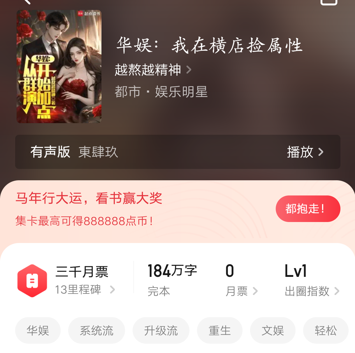 阅读门槛:低,比较正常的都市文娱系统文,没啥阅读门槛。