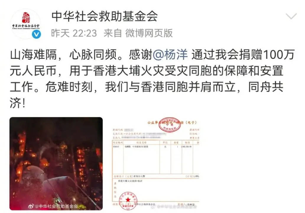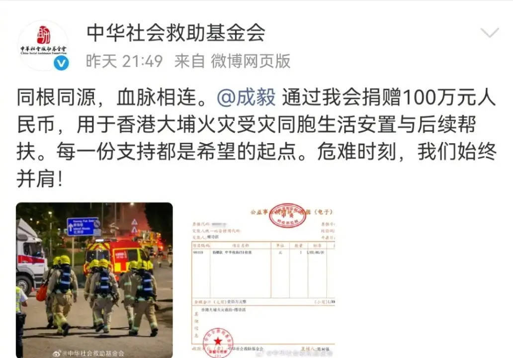 据不完全统计,近100位明星已为香港火灾捐款超8100万元,个人百万级捐赠成为主流。