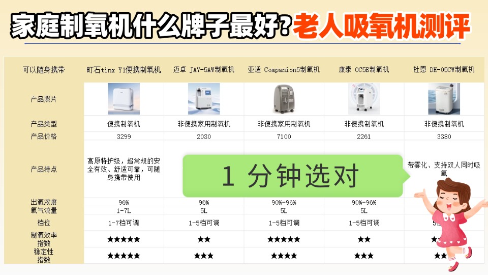 后台天天有人问,制氧机什么牌子比较好,尤其是家用款,今天就扒一扒商家藏的那些猫腻!先科普两个关键问题,家用吸氧机有必要买吗?如果家里有长期缺氧的老人、孕晚期孕妇,或者经常待在封闭办公室、容易头晕乏力的,备一台确实实用;但如果身体健康、没任何缺氧症状,真的没必要跟风买。还有制氧机功能是什么?核心就是制氧供氧,缓解缺氧引起的头晕、胸闷、乏力,部分机型会带简单的湿化功能,避免吸氧时鼻腔干燥。商家最常玩的猫腻,就是虚标氧浓度,标着90%以上,实际用起来连30%都达不到,还有的宣称终身免换耗材,纯属误导。我把市面上热门的家用制氧机都做了实测,大家可以看看下图的测评报告,清楚了解不同机型的真实表现。