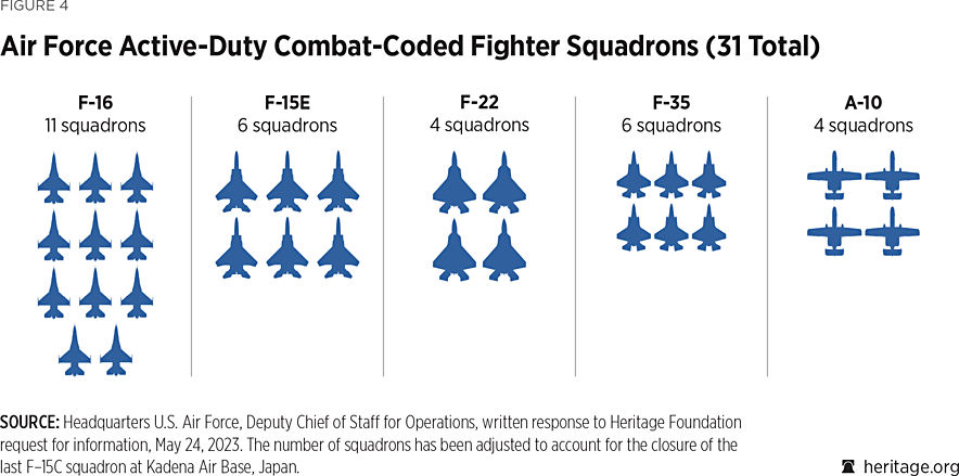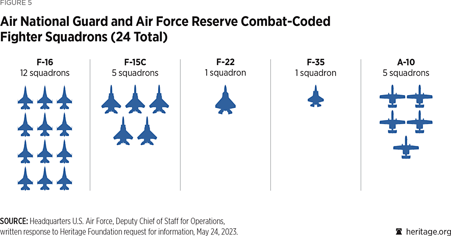 为此,美国重要战略智库国家遗产基金会在2024年就为美军支招,用三个中队(标准编制24架战机)去保障其中两个中队达到战备状态,甚至使其超编,从而获得更强的任务执行能力。并使战备中队的飞行员数量从30人(除去5名具有同样飞行资格的高级军官)增加到36人。这样美国空军现役的31个战斗机中队,可以通过预备役和空中国民警卫队的24个战斗机中队的战斗机和飞行员来保持高战备状态。