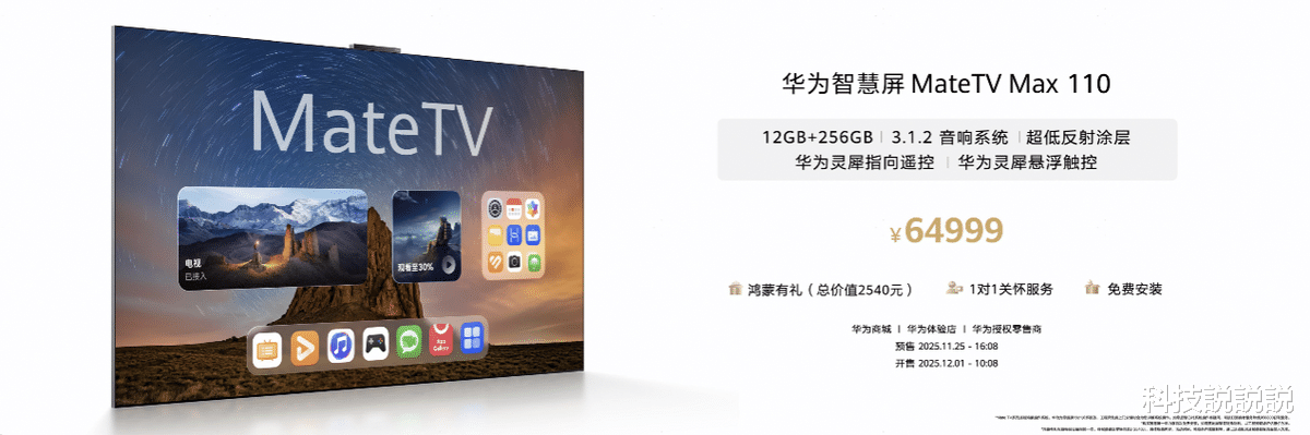 2025年11月25日,华为重磅推出旗舰新品华为智慧屏 MateTV MAX,以110英寸超大尺寸解锁沉浸观感,售价64999元。新品搭载旗舰手机级芯片,实现应用秒开、手游畅玩的超流畅体验;华为灵犀悬浮触控板、华为灵犀指向遥控 2等创新交互外设,打破传统电视操作边界;独立画质芯片“鸿鹄Vivid”搭配华为黑钻屏,全维升级奢华视听;更以家庭“智慧中枢”定位,通过 AI 识人提供千人千面的个性化服务。这款集颠覆性交互、强悍性能、奢华视听与智慧体验于一身的旗舰新品,强势领跑高端电视赛道。