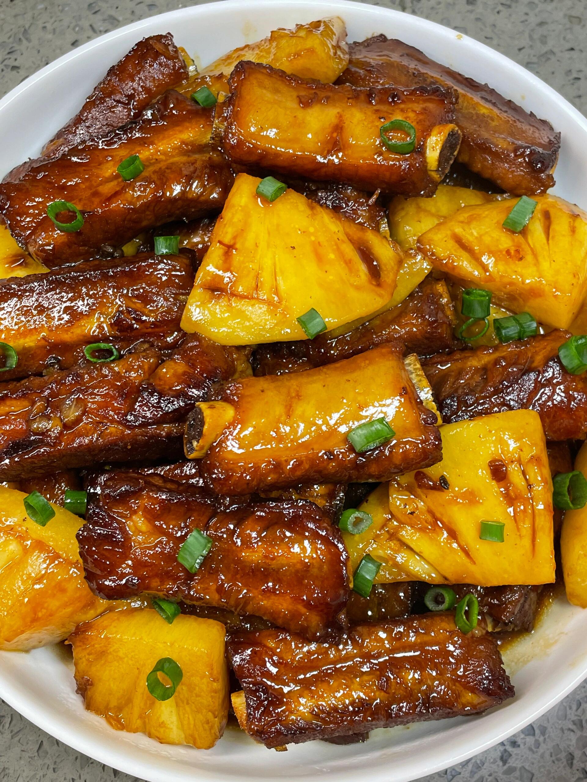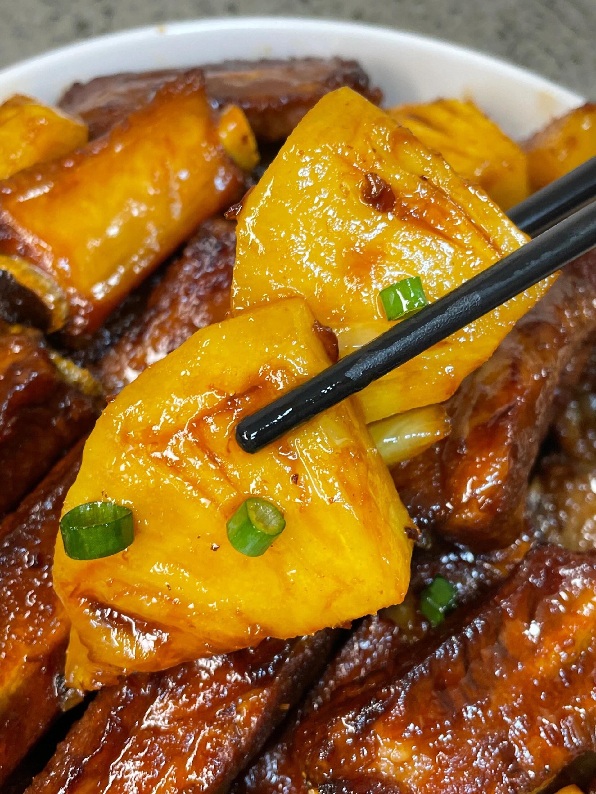 装盘的时候记得把汤汁浇在米饭上,那滋味……我能连干三碗饭!排骨外酥里嫩,酸甜适中,菠萝清爽解腻,一口排骨一口菠萝,简直是最幸福的味道。