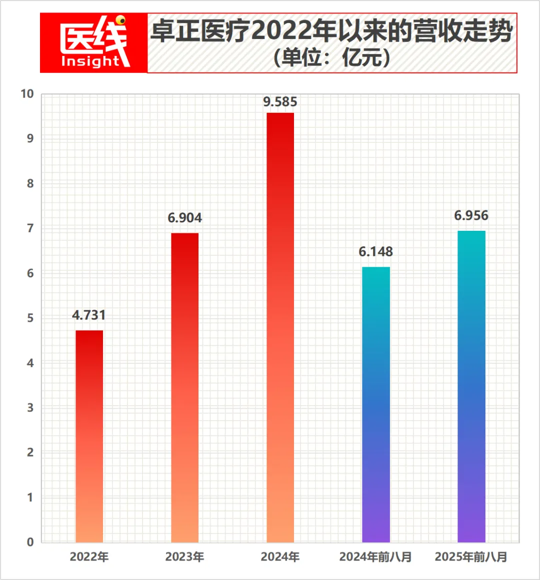 一方面,是营收高速增长。2022年至2024年,卓正医疗的营收从4.73亿元飙升至9.59亿元,复合年增长率高达42.3%。