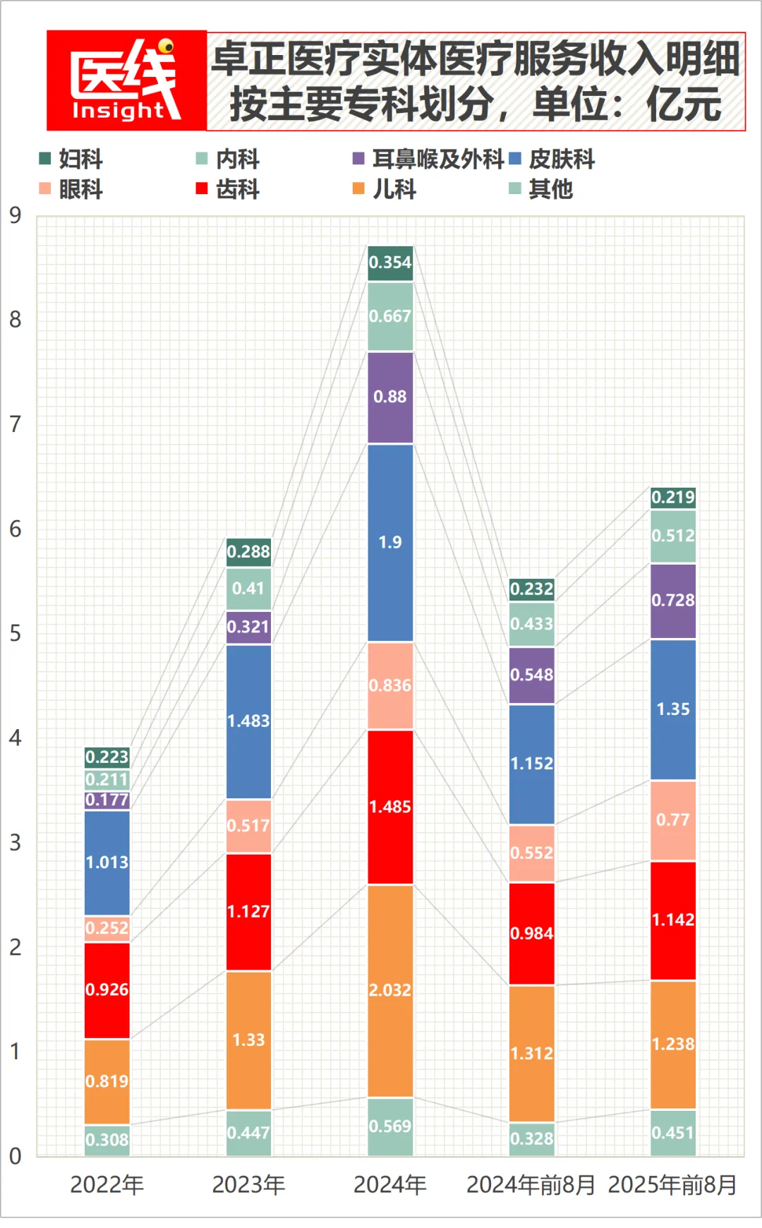 一直以来,外界常误以为卓正只是一家“儿科诊所”,但招股书揭示了其收入结构的深刻变化。虽然儿科依然是流量入口,但高毛利的专科正在成为盈利引擎。