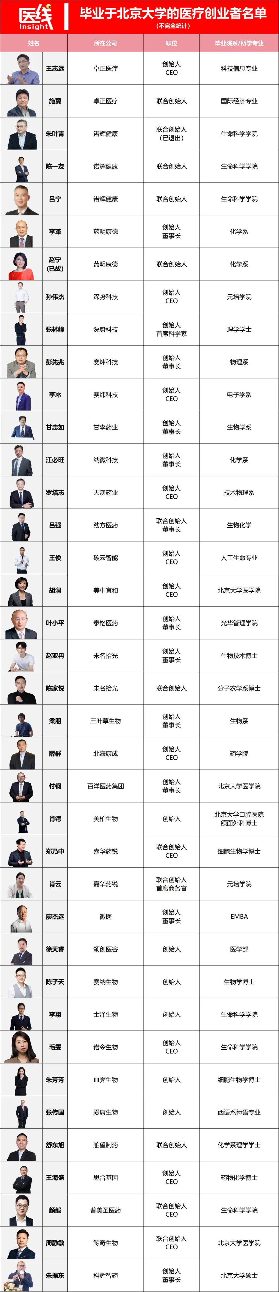 据医线Insight不完全梳理发现,包括药明康德、诺辉健康、嘉华药锐、深势科技、赛炜科技等一众明星医疗创新企业,皆是北大校友之间通力协作而走到今天的。
