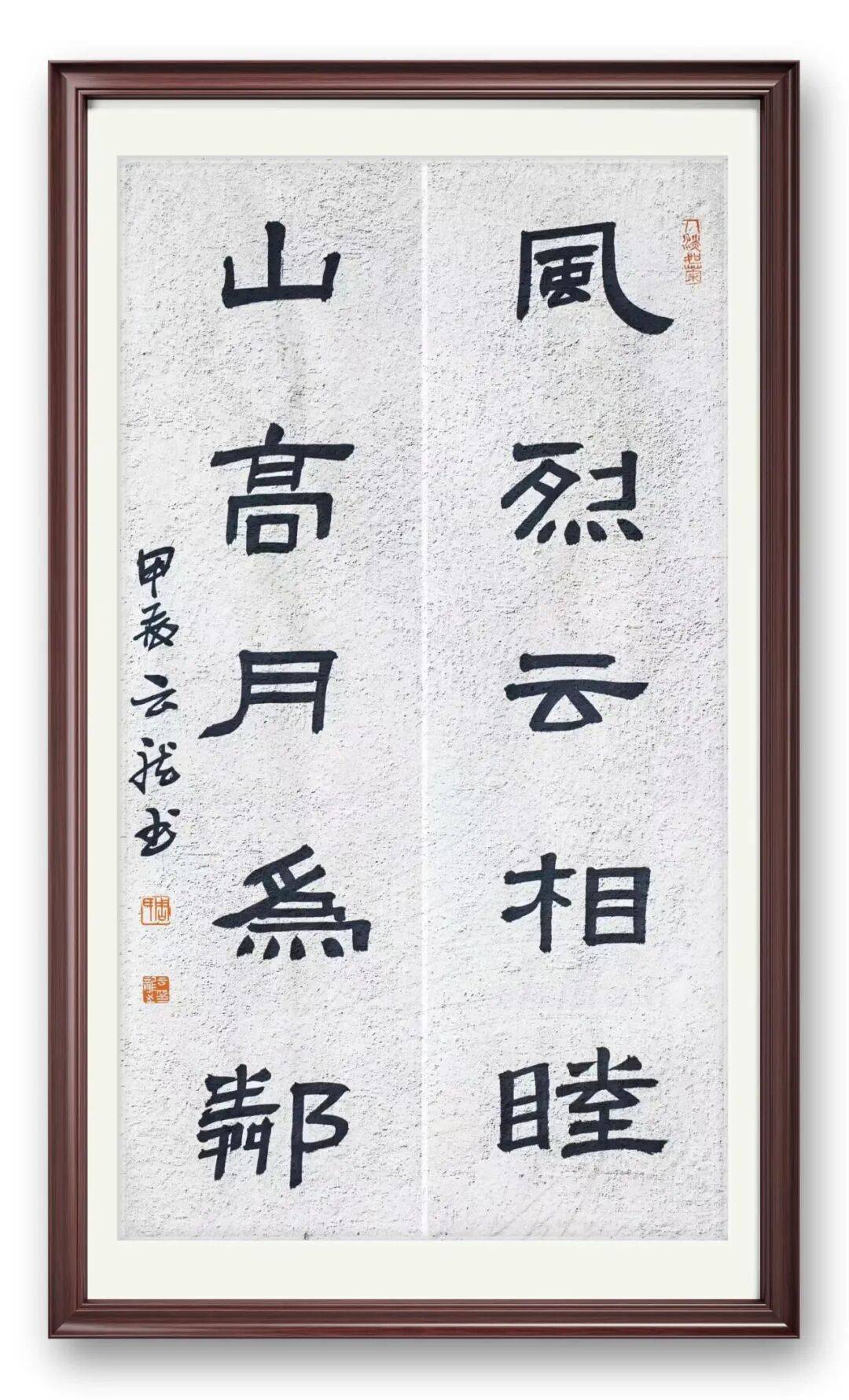 周宏的书法以隶书为根基,常年沉浸于《曹全碑》的秀逸、《张迁碑》的朴拙与《石门颂》的雄放。他的隶书,不刻意追求形式上的复古,而是在对经典碑帖的反复临摹中,提炼出属于自己的笔墨语言。线条刚劲而不失灵动,结体端庄而富于变化,每一笔都饱含着电力人特有的沉稳与力量。这种“师古而不泥古”的创作态度,使他的书法既有传统的底蕴,又不失时代的鲜活。