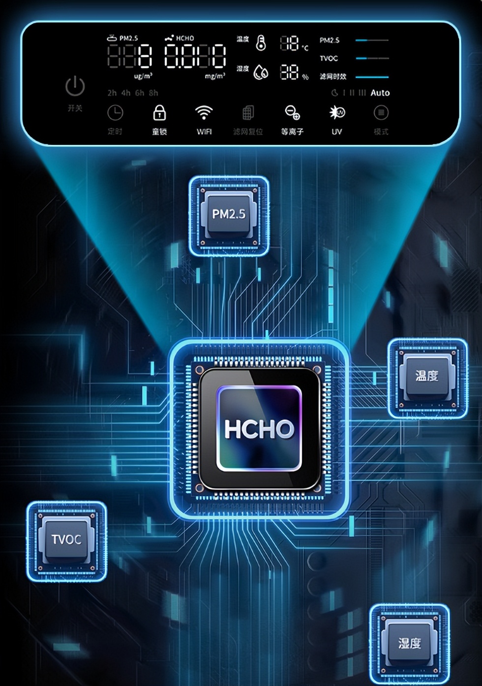 四、额外加分:一机多用,覆盖全家需求作为旗舰机型,新颐A8兼顾强效除醛能力,甲醛CADR达1092m³/h,可覆盖193㎡空间,新装修母婴房也能快速除醛,杜绝甲醛+病菌双重隐患;支持APP远程操控,宝妈出门时可提前开启除菌模式,回家即享洁净空气;高精度传感器实时监测空气质量,红黄绿三色直观显示,不用复杂操作就能知晓防护状态。
