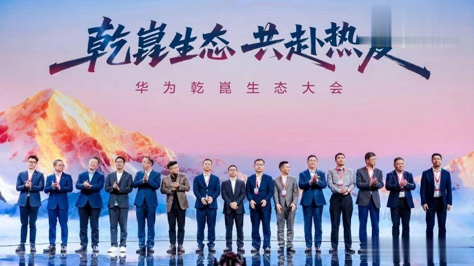 11月20日在广州举办的华为乾崑生态大会上,十一家中国主机厂品牌的代表站在靳玉志两侧,他们皆与华为形成了深度捆绑拥抱华为乾崑智驾。