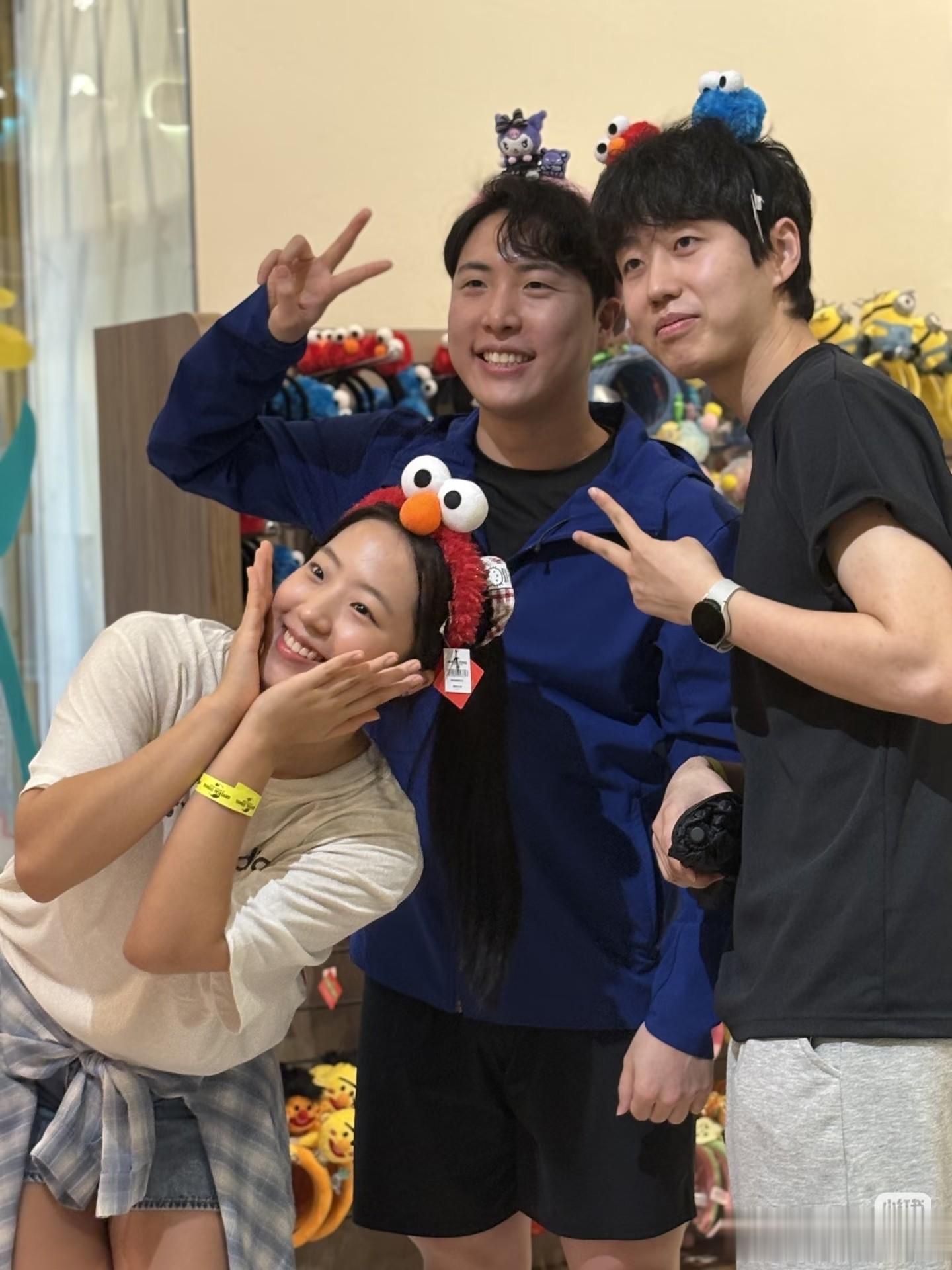 申裕斌带着哥哥们一起打卡环球影城,还戴上可爱的发夹一起拍照,申裕斌今天训练结束,也是换上自己的衣服了,一看就是活泼开朗的女孩子。